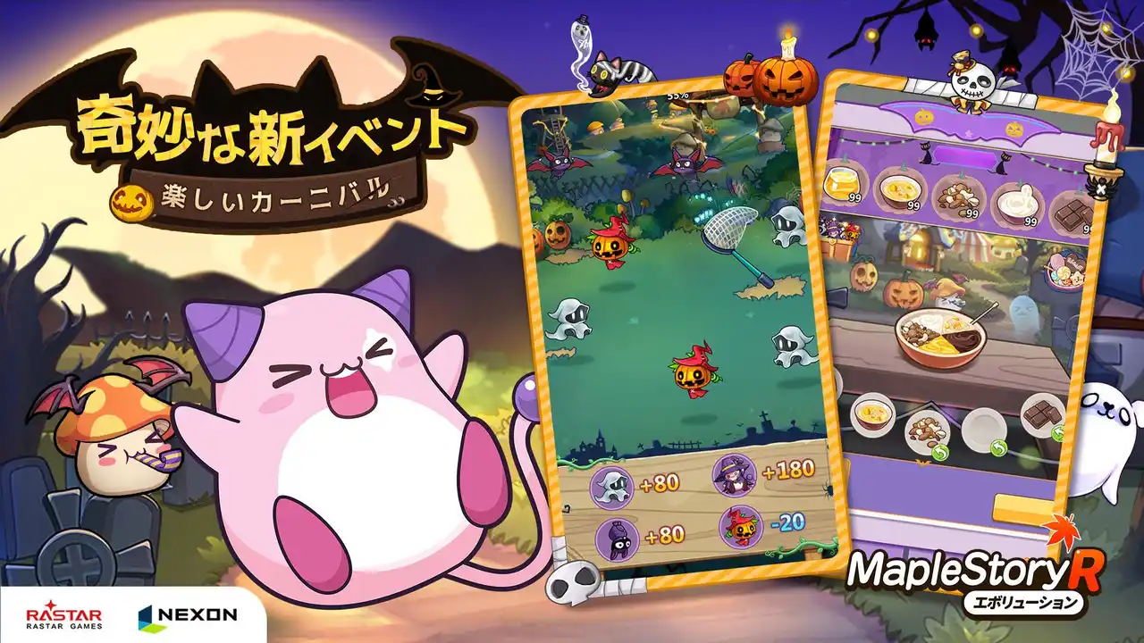 ネクソン完全監修の冒険RPG『メイプルストーリーR: エボリューション』において、限定イベント「怪奇ハロウィン」を開催します。ハロウィンの雰囲気を出す外観やミニゲームなどのコンテンツが実装され、特別なログインボーナスも実施されます。 |