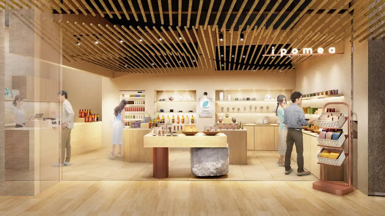 | 「KIRISHIMA GREENSHIP icoia」に入る霧島酒造の直営店舗「KIRISHIMA LIFE STORE ipomea」では、訪れたお客様の暮らしがもっと美味しく、もっと自由に、もっと幸せになれるヒントをご提供できるよう、霧島焼酎やKIRISHIMA BEERをはじめ、お酒のシーンが楽しみになるような食品や酒器、雑貨などを販売します。内装は自然木やシラス壁(火山灰)を使った温かみあふれるデザインとなっており、テーブルの一部には、さつまいもが日本に最初に伝わった場所とされる沖縄県の琉球石灰岩を使用しています。霧島酒造だからこそお届けできる焼酎の楽しみ方や新たなカルチャーを発信することで、これまで焼酎に馴染みのなかった方にも、「焼酎」という存在をもっと身近に感じていただきたいと考えています。 | ||||||||||||||||||