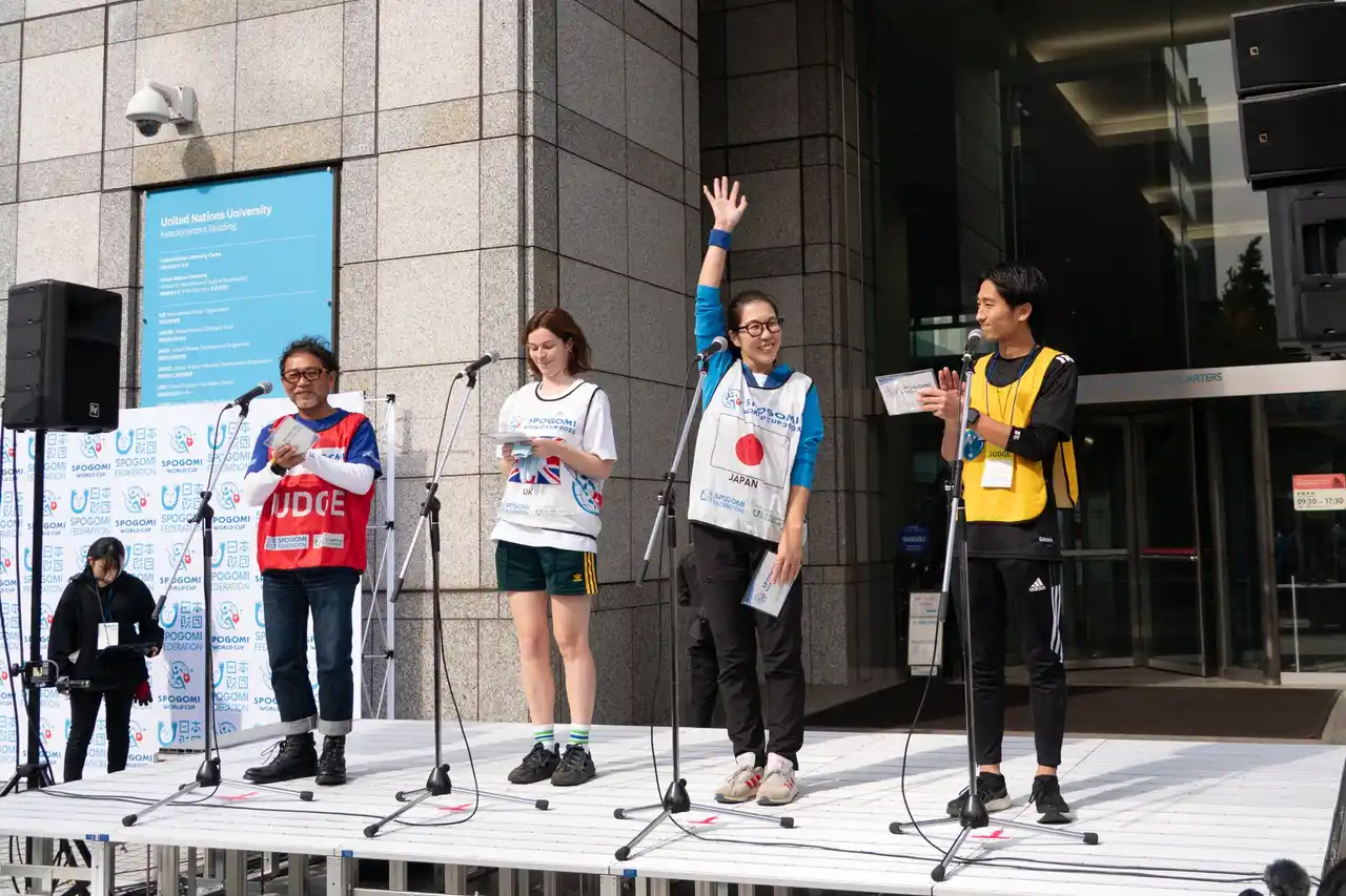 一般財団法人日本財団スポGOMI連盟(本社:東京都港区、代表理事:玉澤 正徳、以下「日本財団スポGOMI連盟」)は、2025年10月29日(水)、国際連合大学にて「日本財団スポGOMIワールドカップ2025」の決勝大会(「FINAL」)を開催しました。世界一を決めるFINALには、世界34カ国の代表予選会を突破した33チーム99名※が参加し、2位に996.5ポイント差をつけて日本代表「スマイルストーリー」が優勝を果たしました。(※パキスタン代表チームは渡航上の理由でFINALは不参加)世界から集結したスポGOMIアスリートたちは、スポGOMI を通じてスポーツと環境アクション双方による爽快感と達成感を共にしました。合計878.98kgものごみが回収され、海洋ごみ削減への歩みがまた一歩、前進をした記念すべき1日となりました。