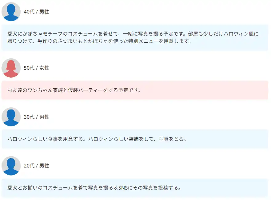 | 愛犬とハロウィンを楽しむ飼い主さんからは、思わず笑顔になるような計画が多く寄せられました。 | |||||||||||||||