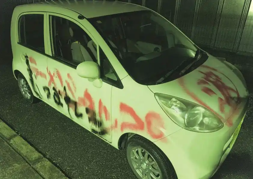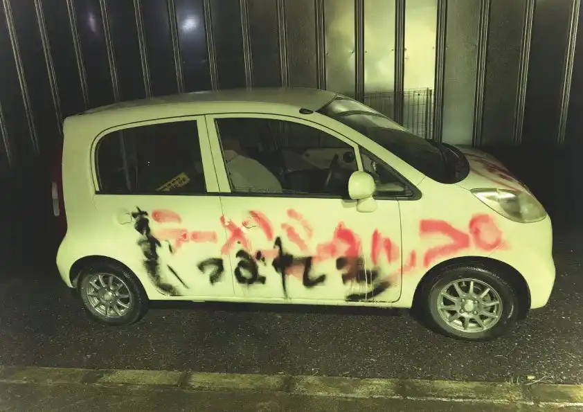 | ある日、店の駐車場に停めていた店主の車が、何者かによりスプレーで落書きされるという被害に遭った。 | |||||||||