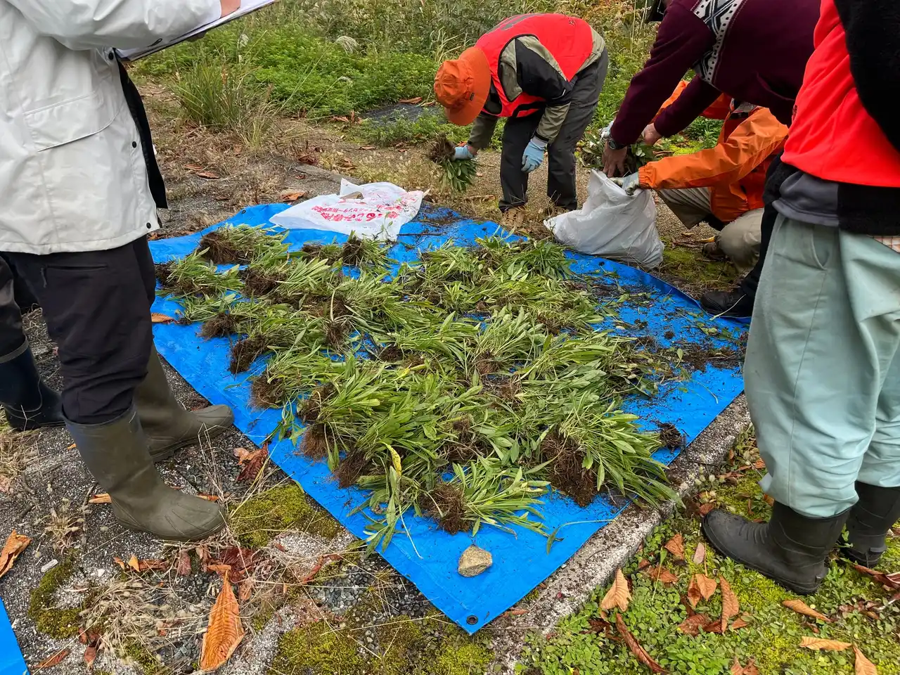 競技時間は合計1時間。前半の30分間は「規定部門」として、割り当てられたエリア内での除去技術を競いました。評価基準は「分類の正確性」「とり残しの少なさ」「根まで除去できているか」「土を乱していないか」の4項目。いかに“美しく・正確に”外来生物を取り除けるかが勝負の鍵でした。後半の30分間は「フリー部門」として、エリアを自由に移動しながら除去活動を実施。ここでは除去したオオキンケイギクの総重量が得点に反映され、「量とスピード」を競う形式で実施されました。 |