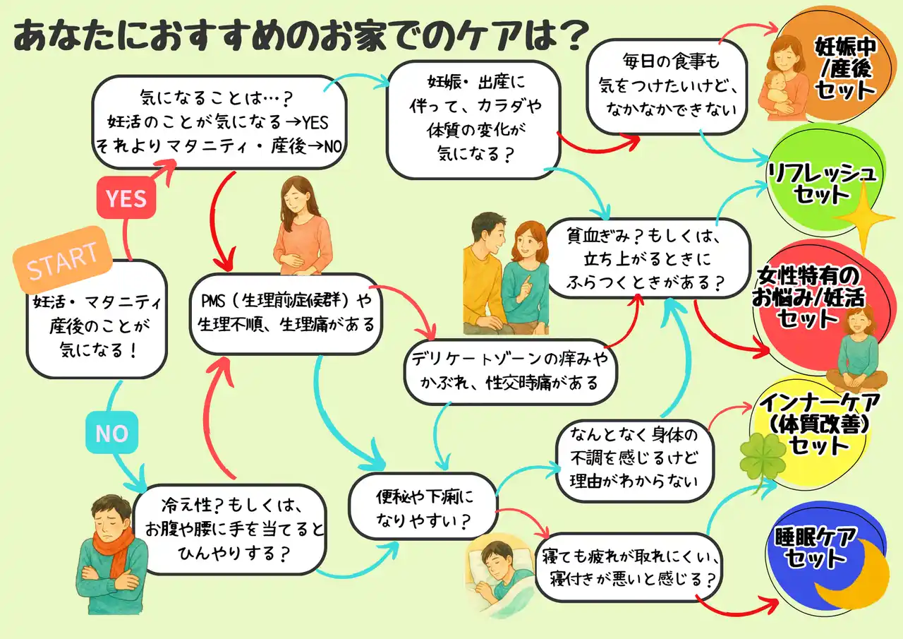 お悩み別フローチャート「おすすめのお家でのセルフケア」 |