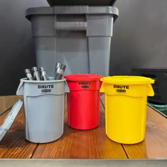 アメリカ生まれのブルートコンテナは、「ゴミ箱」や「収納」としての実用性に優れた、Rubbermaid(ラバーメイド)の定番アイテム。サイズやカラーも豊富で、ゴミの分別や、室内でのディスプレイ収納など、幅広い用途に対応します。 マットな質感と丸みのあるフォルムは、カフェやショップなどの空間に自然となじみ、海外風の空間づくりにもぴったり。 さらに、頑丈で紫外線に強く、屋内外問わず使えるので、ベランダや玄関前、ガレージでも安心。暮らしや空間に合わせて、アイデア次第で様々な場所で活躍できる商品です。 |