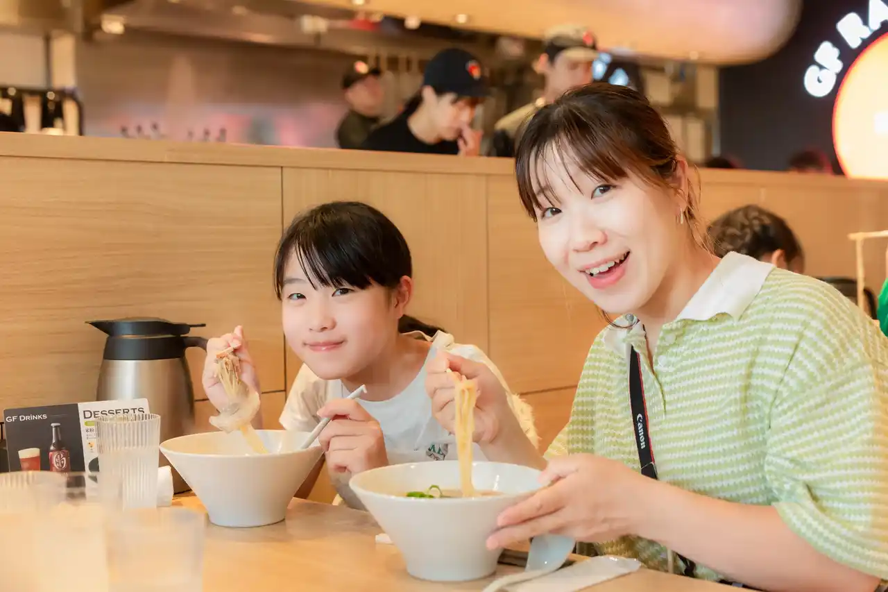 | 小麦アレルギーを持つお子さまのご家族からは、「このお店のために万博に来ました。家族で初めて同じラーメンを食べることができました」との感動的なお言葉を頂戴し、海外からのお客さまからも「日本ではグルテンフリーの選択肢が少ない中、家族で美味しく食事ができた」とのご感想をいただきました。 |