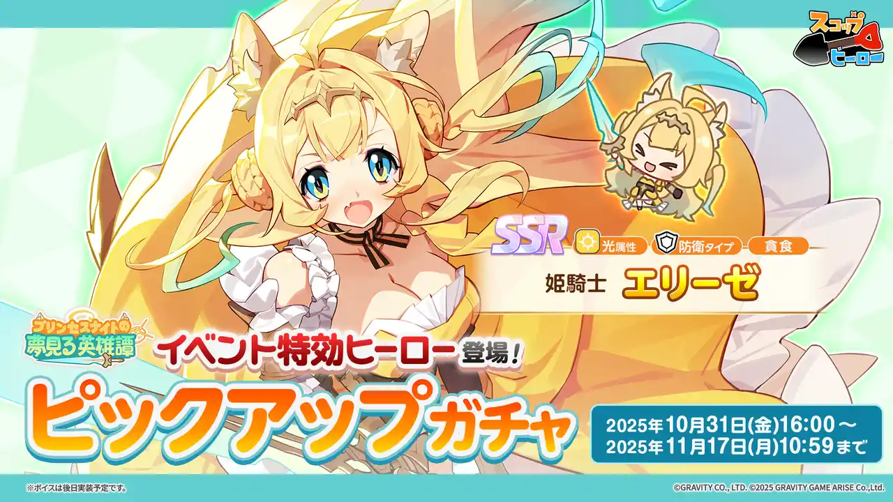 グラビティゲームアライズ株式会社(所在地:東京都中央区)は、スマートフォン向けゲームアプリ『スコップヒーロー』(通称:スコヒロ)にて、2025年10月31日(金)より新イベント「プリンセスナイトの夢見る英雄譚」を開催いたします。