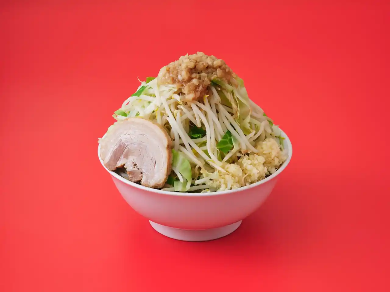 | 画像:ラーメン(全増しトリプル)。無料トッピングで驚きの量に! |  |