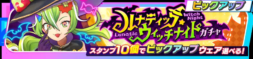 | ヴィヴィ(CV:石上静香)のハロウィン風の新ウェア、【★5ルナティック・ウィッチナイト】がピックアップで登場します。 |