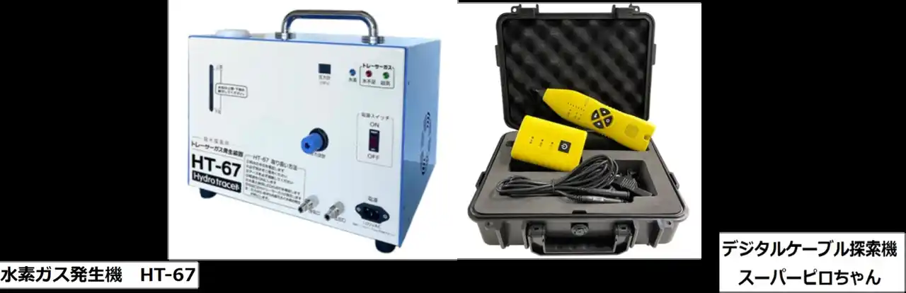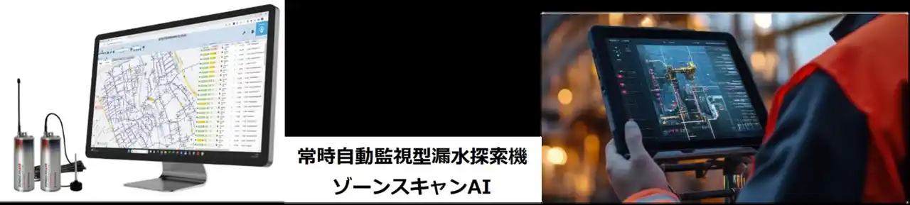 例えば、前述のハイドロトレーサーと組み合わせて使用するガス式漏水探知機「ハンター」により、従来難しかった夜間や騒音環境下での漏水箇所特定が飛躍的に効率化しました。また、無線ロガー式漏水探索システム「ゾーンスキャン」は AI を活用して広域の漏水を自動監視できる世界唯一の画期的製品であり、水道事業体による漏水常時監視体制の構築を可能にしています。 |