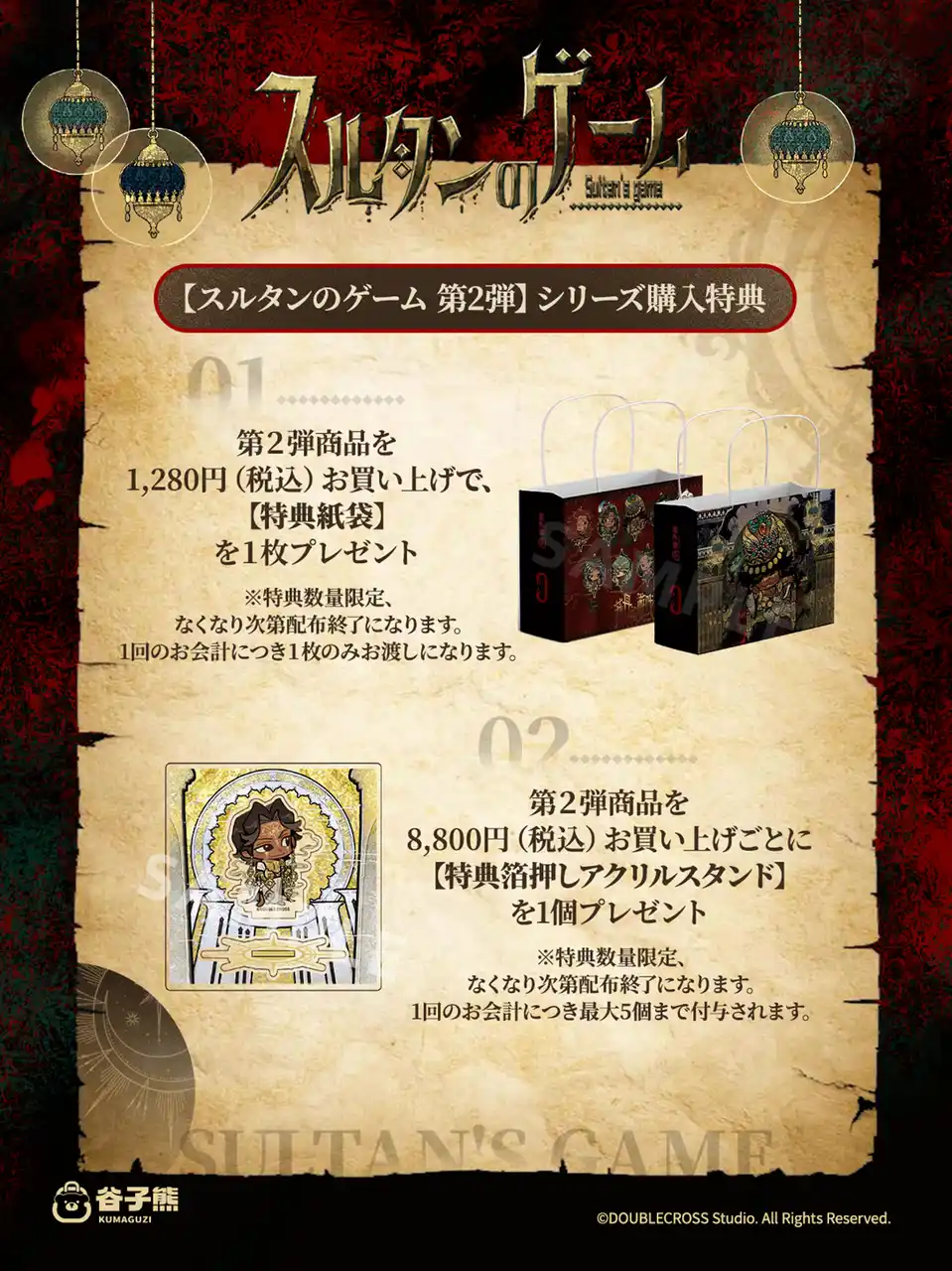 ・第2弾商品を1回のお会計で¥8,800(税込)お買い上げごとに、【特典箔押しアクリルスタンド】1個プレゼントいたします。(※重複可) |