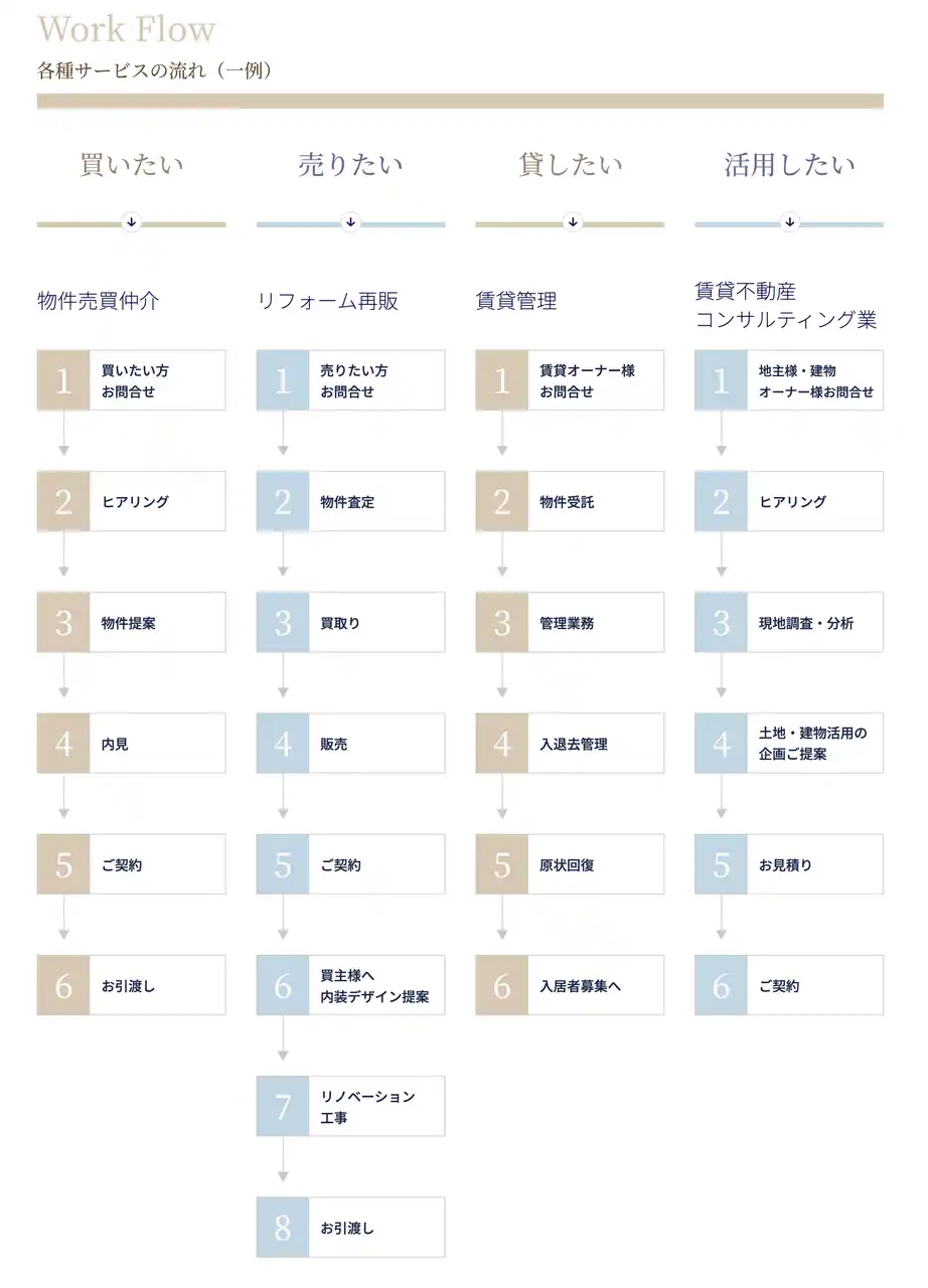 物件売買仲介を通じて、お客様一人ひとりの理想と資産価値を最大限に引き出します。 |