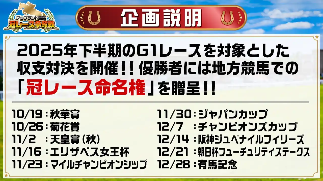 | 2025年下半期のG1レースを対象に、.LIVEおよびぶいぱいメンバーが「アプラン」を競います。 | |||