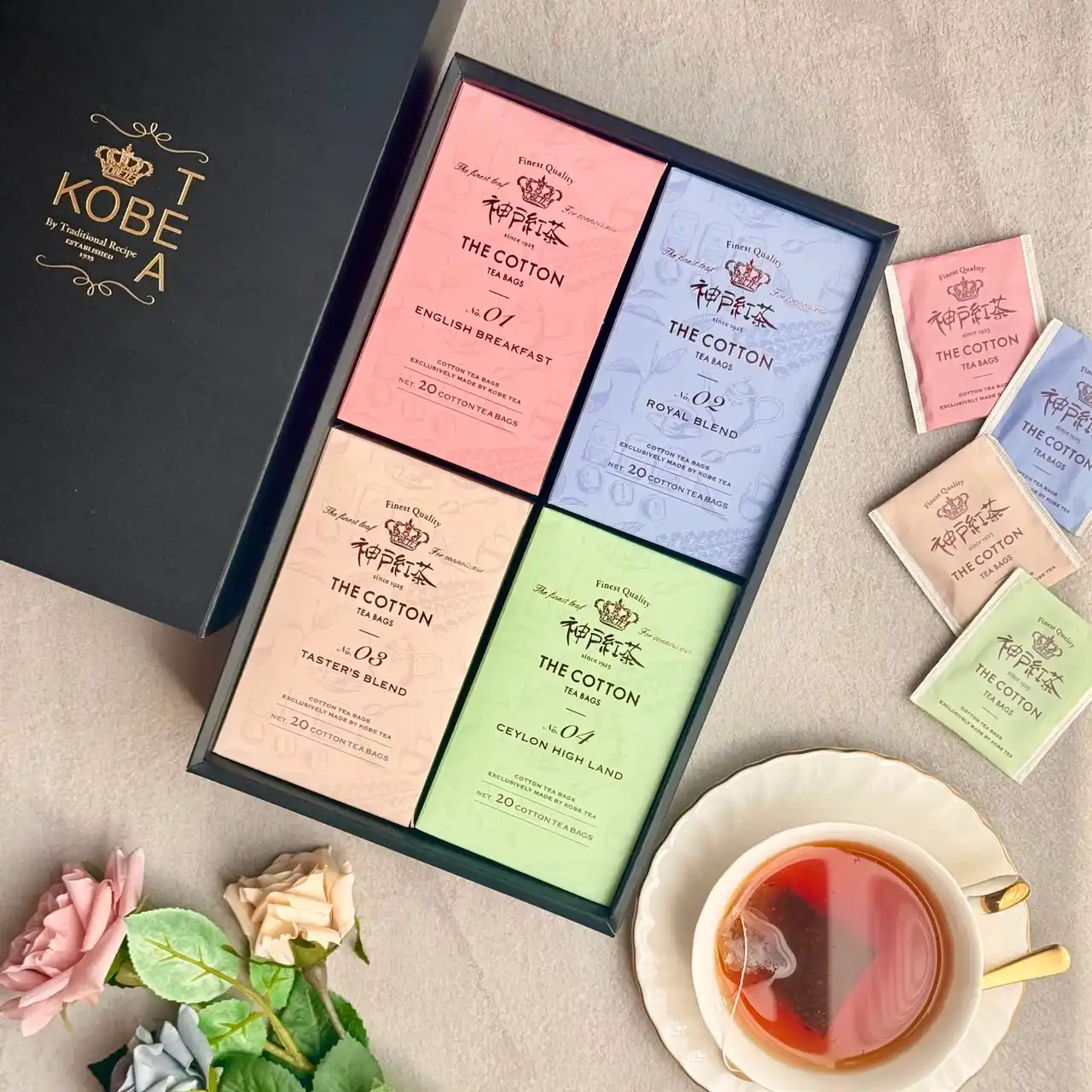 1925年に地元神戸で創業した紅茶メーカー。日本で初めてティーバッグの製造を開始した紅茶業界のパイオニアです。独自の技術で抽出力に優れたコットン素材のフィルターを使用し、こだわりのティーバッグを製造しています。世界160か所以上の優良茶園から届く紅茶サンプルを、日本では数少ない“紅茶鑑定士”が厳しく審査・買い付けをし、選りすぐった高品質の茶葉だけを日本の水に合わせてブレンドしています。こだわりのブレンド紅茶をお楽しみください。 |