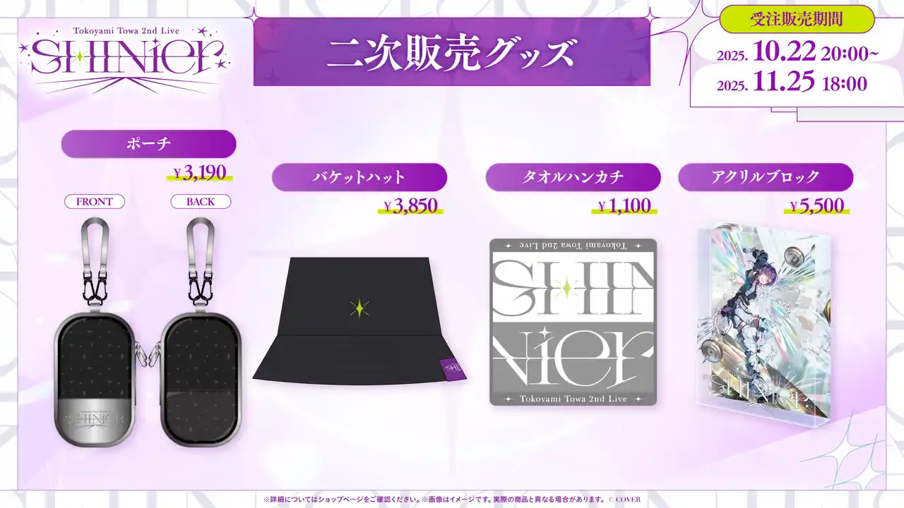 グッズ購入(海外):https://shop.hololivepro.com/en/products/tokoyamitowa_2ndlive_shinier_secondaryorder
