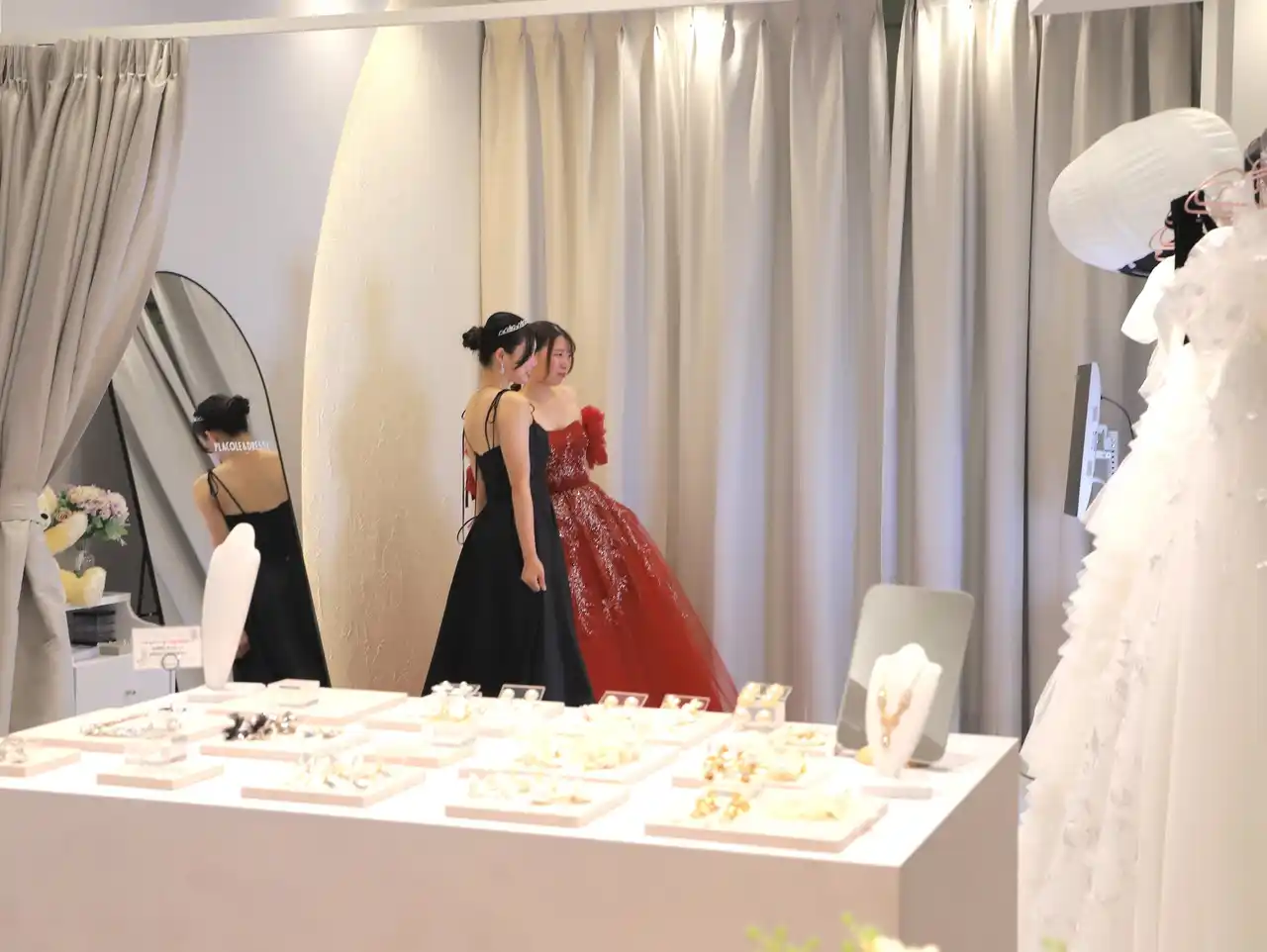 | プレオープンとして2025年10月23日(木)には関係者向けレセプションイベントを開催。ウェディングドレス試着やセルフフォト「PICmii」の体験などのコンテンツと共に、ウェディングのテーマパークを目指した体験型カフェを実際にお楽しみいただき、また名物スイーツやドリンクの提供を行いました。当日は約200名の関係者・インフルエンサー・メディア/報道関係者にお越しいただきました。 | |||||||||
