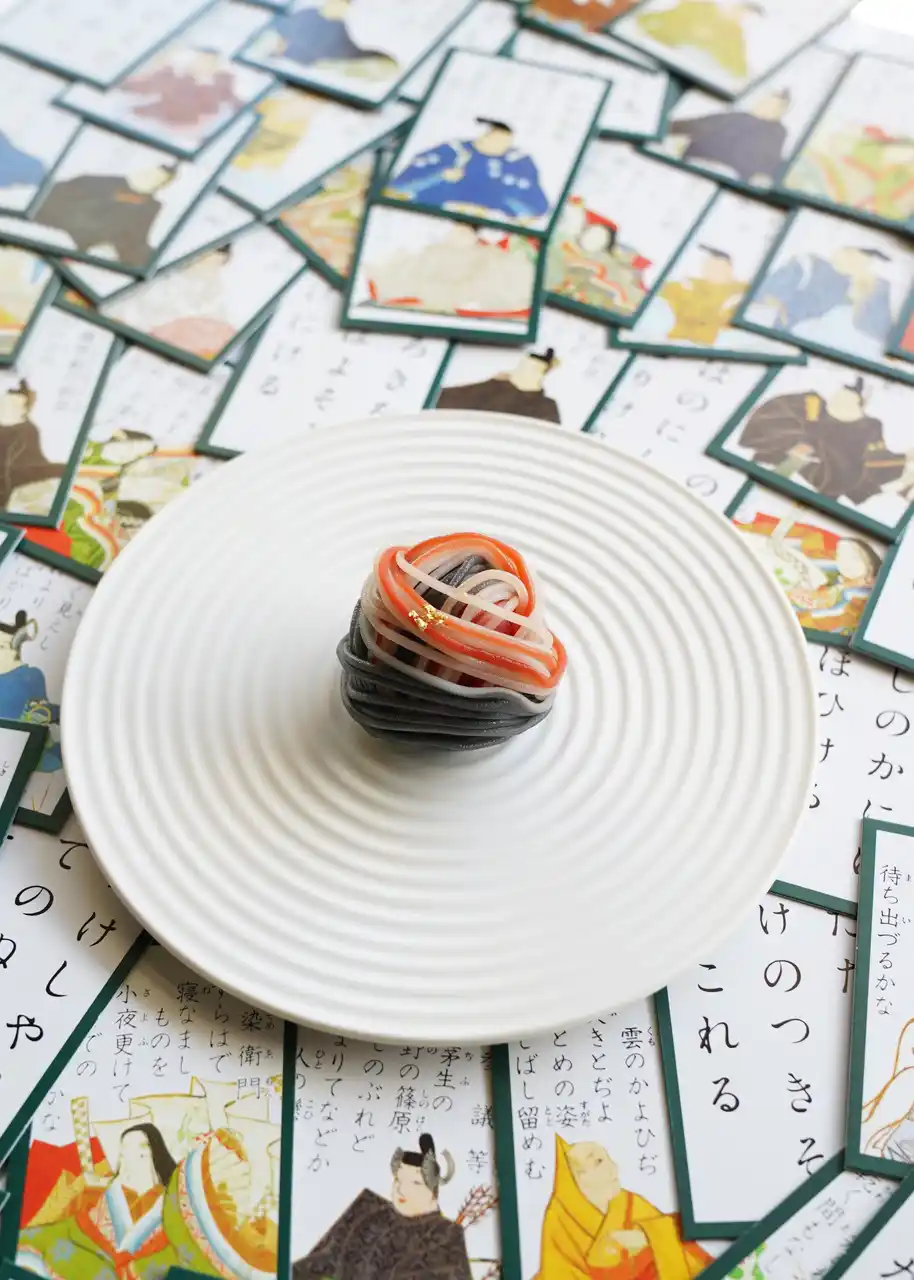 | 今年の11月、12月は、京都府立「嵯峨野高等学校」京・平安文化論ラボの生徒の方が、源氏物語にちなんだデザインを考案し、東寺に店を構える「ことの葉」の店主 西野彩華が、生徒のデザインを繊細な色や細工で形にした、コラボ和菓子を期間限定でカフェにて提供。 | |||||||||