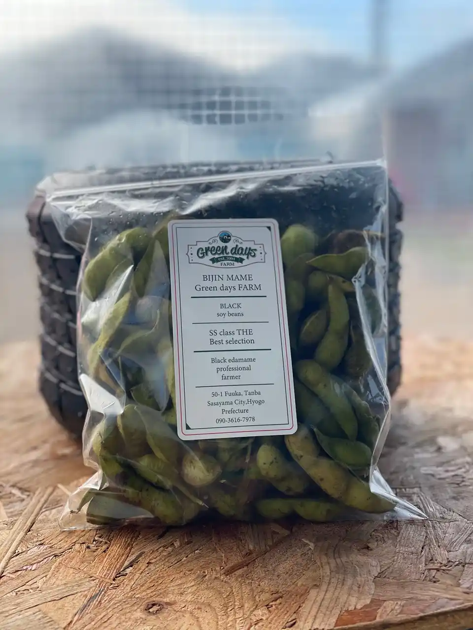 「美人豆」は、この丹波篠山の黒枝豆をGREENDAYS FARMが独自にブランド化したものです。さやが茶色く色づいた頃が、最も甘みと栄養価が高まる食べ頃のサインです。