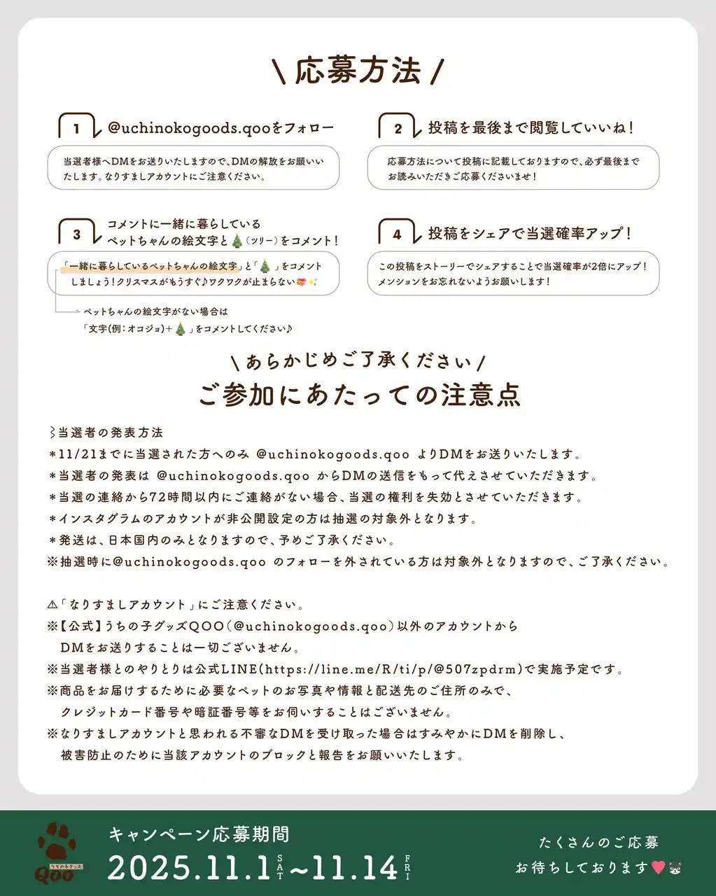 公式Instagramアカウント( @uchinokogoods.qoo )を「フォロー」。 |