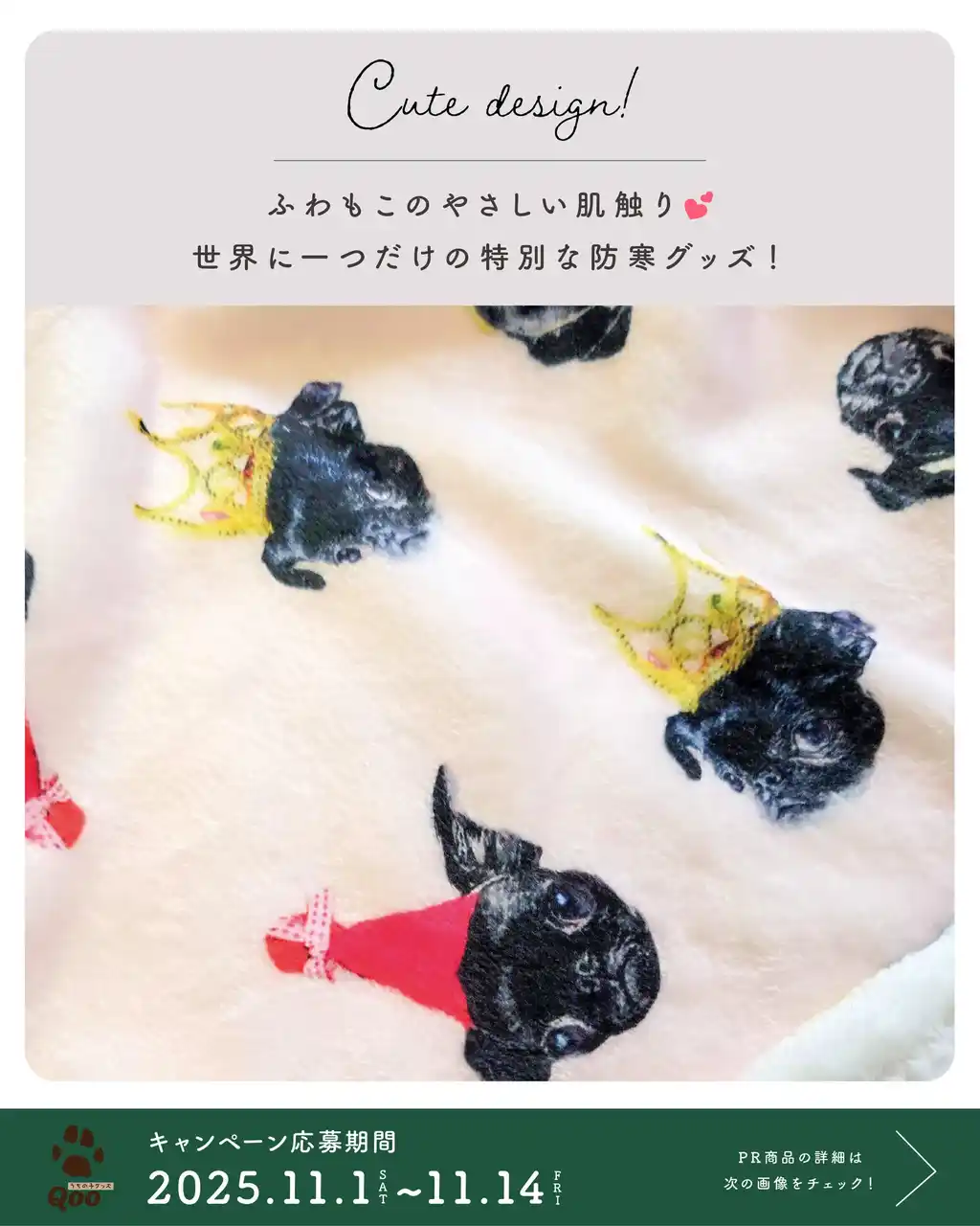 株式会社PHOTOPRIが運営する、ペットの写真をプロのデザイナーがオリジナルのうちの子グッズに仕上げるEコマースプラットフォーム「うちの子グッズQoo」( https://uchinoko-goods.jp/ )は、『うちの子似顔絵ブランケット』(https://uchinoko-goods.jp/products/nigaoe-blanket)の魅力と心温まる価値を共に発信してくださるPRモデル(モニター)を、2025年11月1日より募集開始いたします。 |