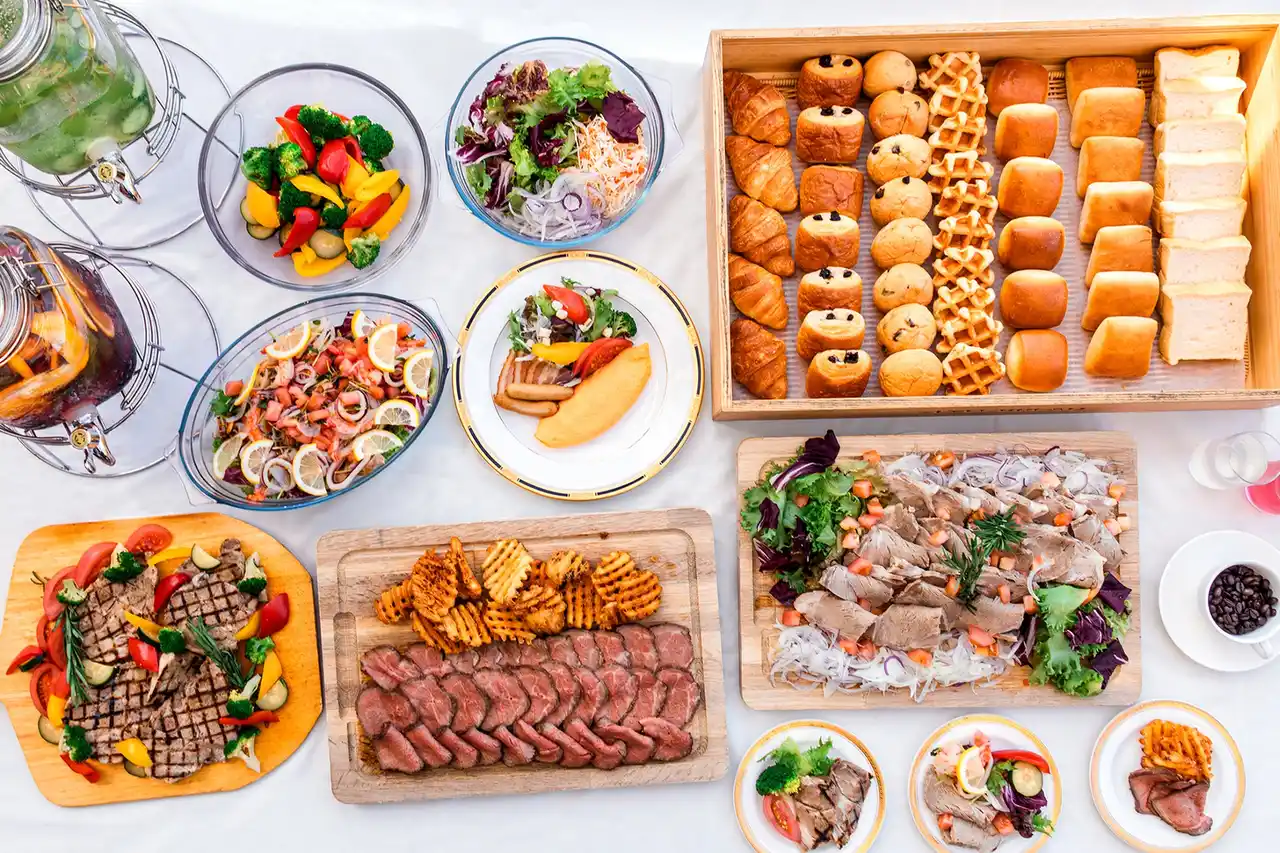 ライブコーナーでは、ピーチポークの肩ロースグリルをシェフがライブカッティングでご提供。さらに、具材を選べる「ふわとろオムレツ」や「季節のだし巻き卵」、自家製ベリーソースとホイップクリームを添えた「ホテル特製フレンチトースト」など、目の前で仕上がる一皿が1日の始まりを特別に彩ります。 |
