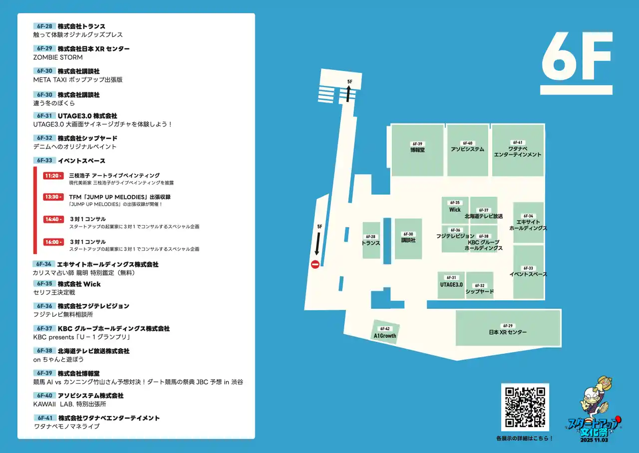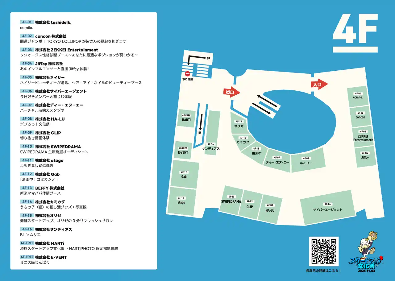 スタートアップファクトリー(本社:東京都目黒区 代表:鈴木収)は、2025年11月3日(月・祝、文化の日)に、渋谷ストリームホールにて「渋谷スタートアップ文化祭(以下、文化祭)」を初開催いたします。本イベントは、スタートアップ企業や大手企業など総勢40社以上が一堂に会し、来場者が文化祭感覚で楽しめる入場無料の体験型イベントです。この度、追加情報が決定しましたのでお知らせします。 |
