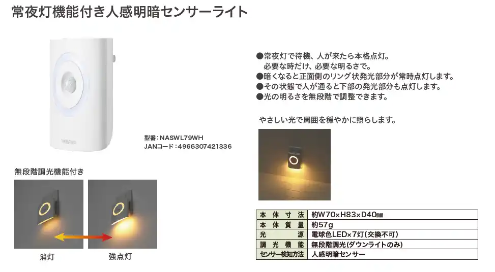 | インテリア家電製品および、PCサプライ品の製造販売を手掛ける株式会社ヤザワコーポレーションは、常夜灯機能付き人感明暗センサーライトを発売いたしました。 |