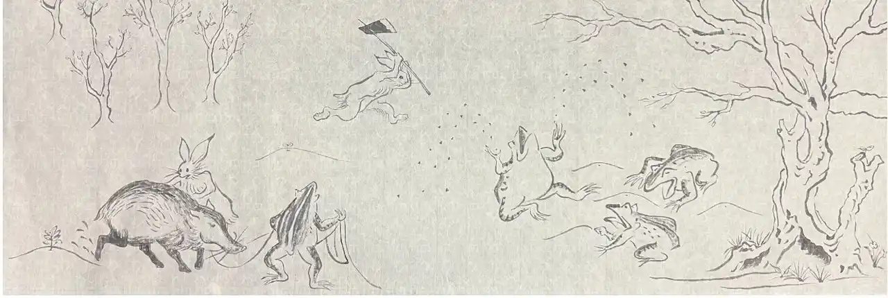 | 手漉き和紙絵巻『鳥獣戯画~手漉き和紙ができるまで~』は、国宝『鳥獣人物戯画』が伝わる京都 栂尾(とがのお)山 高山寺より許諾をいただき、手漉き和紙の原料となる楮やトロロアオイの栽培から、紙漉きの工程、流通までのイメージをお馴染みの動物たちを模して描いた巻物。 | |||
