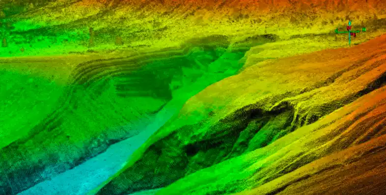 また同日に、有珠山周辺の精密LiDAR測量も行いました。こちらは飛行時間約30分、距離約40kmとなります。7kgペイロードであっても飛行後の動力バッテリー残量は余裕があり(12500mAh消費)交換無しでもう1フライト可能な状態でした。 |