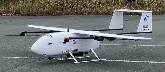 VTOL固定翼UAV「QUKAI MEGA FUSION 3.5」(機体下部にLiDARが搭載) |
