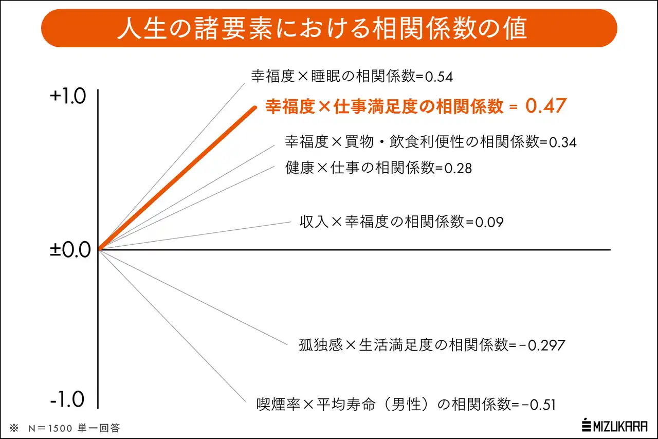 | 認知科学に基づくコーチングを法人・個人に提供する株式会社ミズカラ(本社:東京都千代田区、代表取締役 山宮健太朗)は、2025年8月~10月にかけて25歳~59歳の既婚有職男女1500名を対象とした「幸福度と仕事満足度の相関係数」に関する意識・実態調査を行いました。 | |||