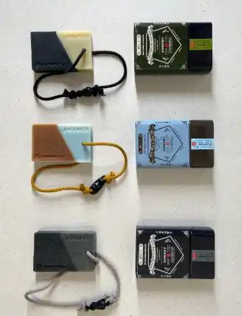 株式会社大阪エース(本社:大阪府摂津市、代表取締役:小川 佳美)と、バッグやアウトドア用品を展開するアンバイ株式会社(UNBY, inc.、本社:兵庫県三田市、代表取締役:冨士松 大智)は、初のコラボレーション商品として、アウトドアシーンに最適な多機能石鹸「エース石鹸 OUTDOOR SOAP」を発売しました。本商品は、大阪エースが運営する「石鹸工房COCOON」の伝統的なコールドプロセス製法と、UNBYが展開するブランド「AS2OV (アッソブ)」のデザイン性・機能性を融合させた、これまでにない新しいアウトドアソープです。 |
