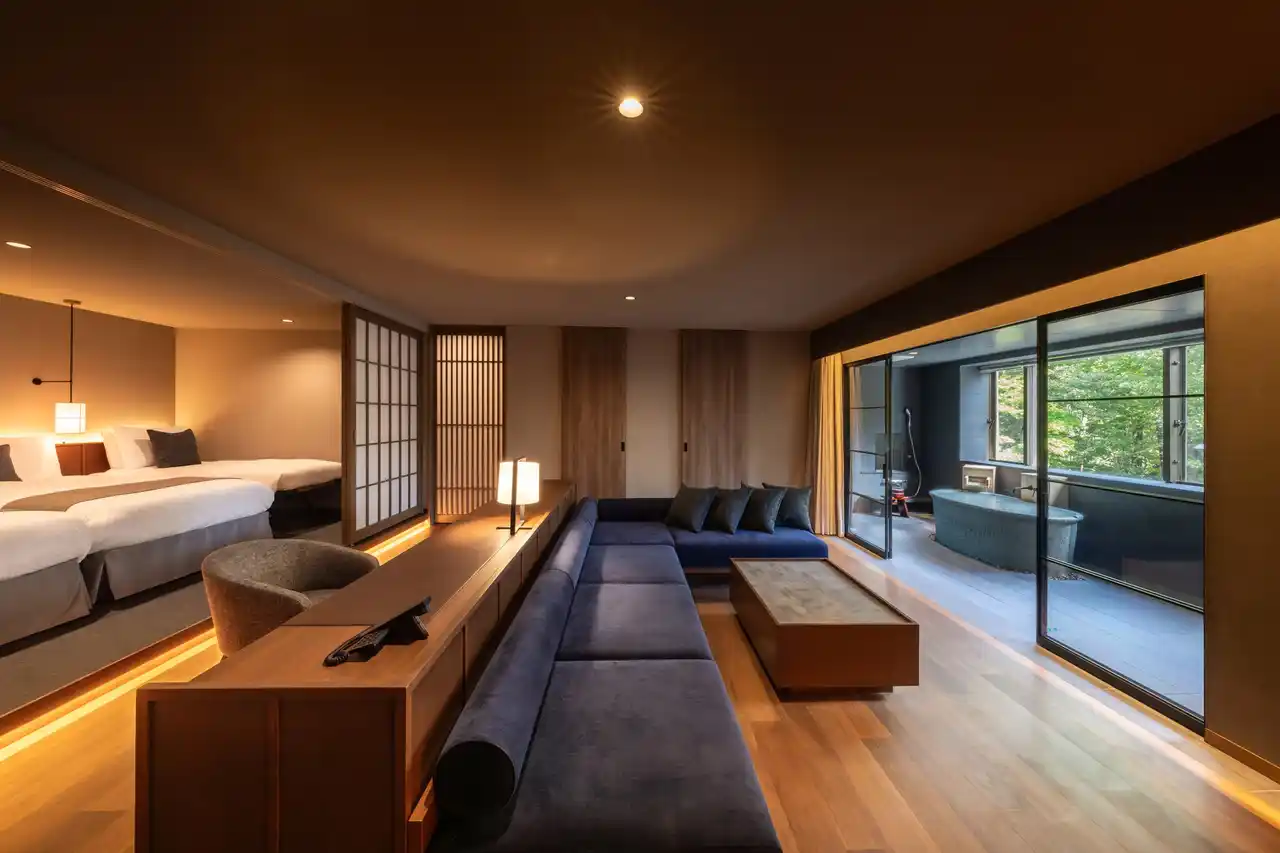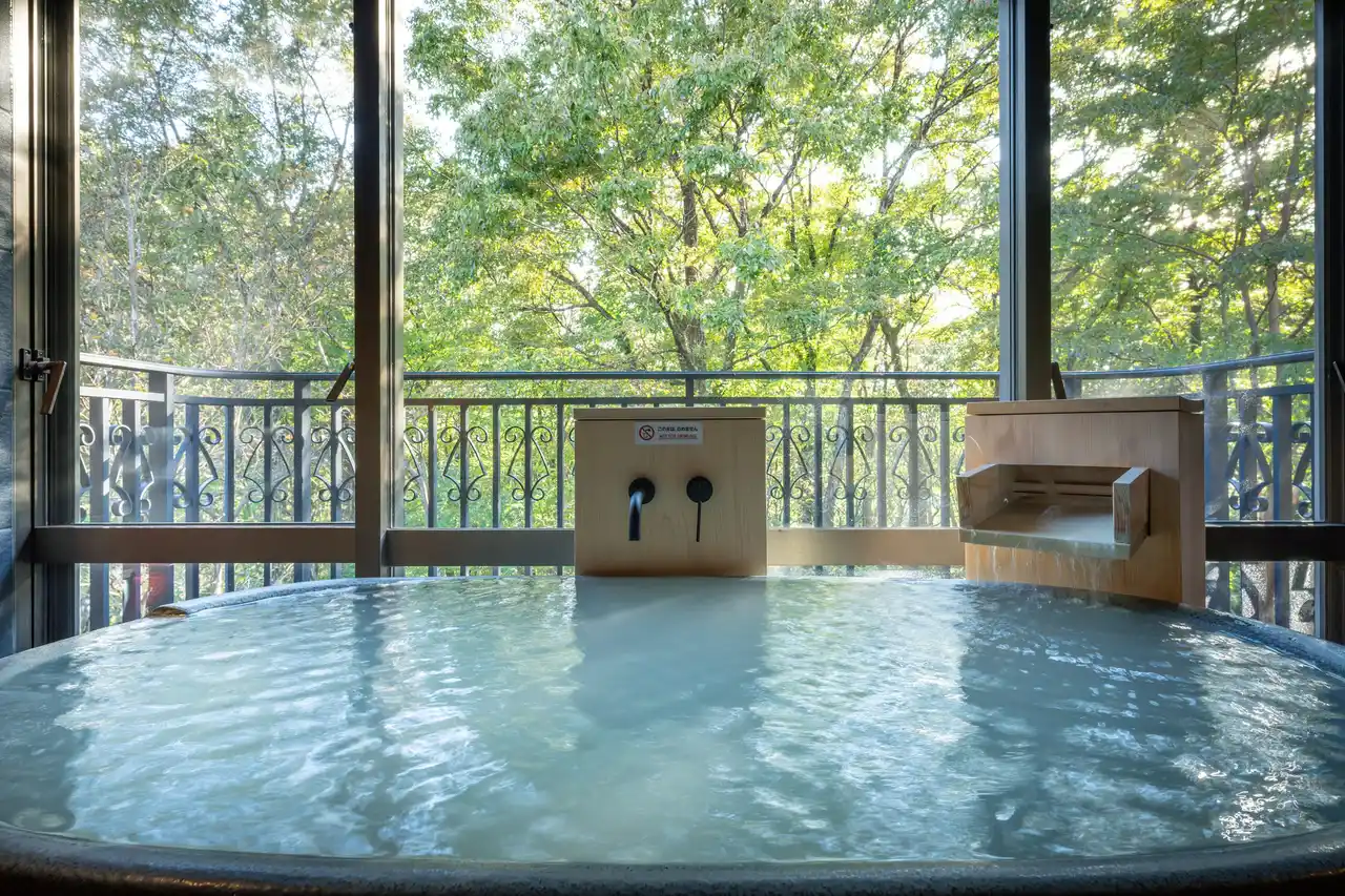 2024年11月のオープンからわずか1年でミシュランガイド ホテルセレクション2025に掲載いただきました。すべての客室に源泉かけ流しの半露天風呂を備え、にごり湯の硫黄泉は疲労回復や神経痛の改善に効果が期待されます。自然を望む大浴場や、一部客室にはプライベートサウナも完備しております。 |