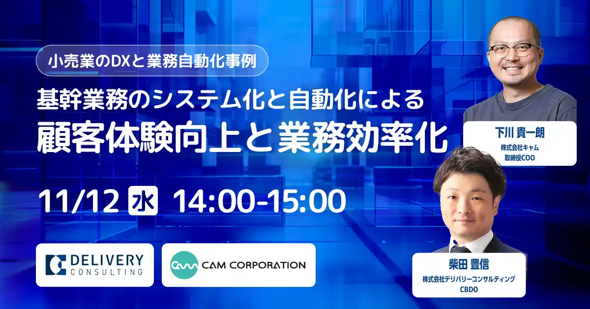 本セミナーは、小売業界におけるDX推進と業務効率化をテーマに、株式会社キャムと株式会社デリバリーコンサルティングが共同開催いたします。 |