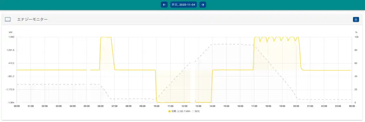 | 本蓄電所では、ヒラソル・エナジーが提供する市場取引機能付きエネルギーマネジメントシステム「J-EMS」を導入し、蓄電池の充放電を最適に制御しています。「J-EMS」は、クラウド側で需要および市場価格を高精度に予測し、卸電力市場や需給調整市場など複数の市場に入札を行い、落札後は市場からの指令に基づいて現場機器を制御する仕組みです。また、自社開発のハードウェア(エッジ)を介して多様な機器と連携し、最適な充放電を実現します。ネットワークスイッチを活用した安全な通信制御と高精度な運転管理により、安定した稼働と収益性の確保を実現しています。 | ||||||||||||||
