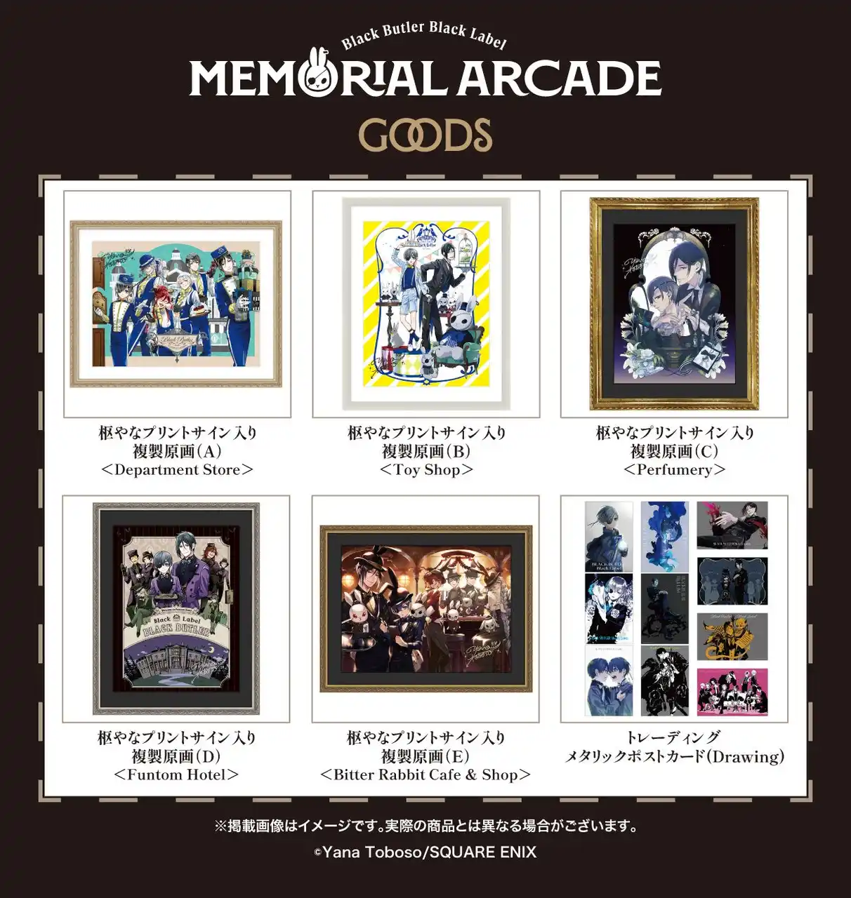 「黒執事 Black Label Memorial Arcade」で販売される「黒執事 Black Label」の新作商品。第三弾では過去のイベントのメインビジュアルイラストを使用した高精細印刷の複製原画や、枢やなのSNSで公開された貴重なイラストを使用したアイテムなどをラインナップいたしました。 |