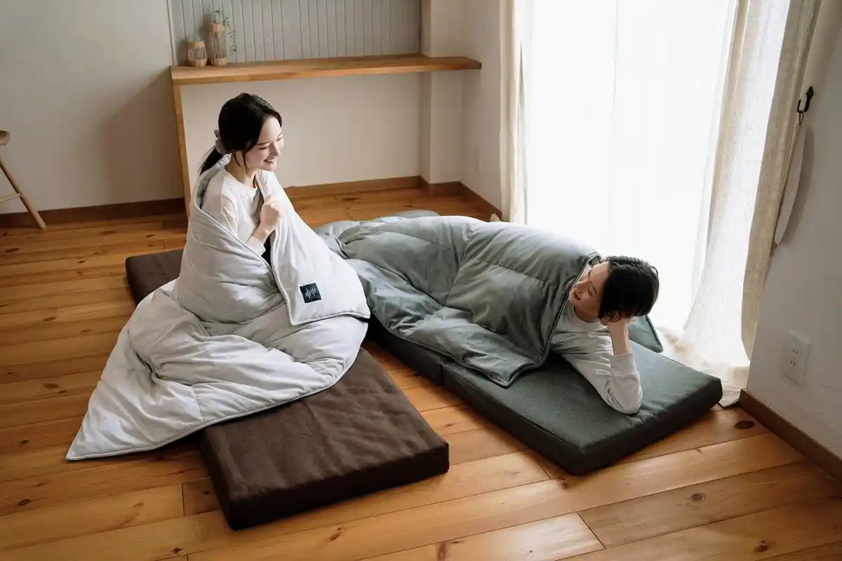 コンパクトな掛け布団を1枚ずつで使用することで極力お互いの眠りを妨げることなく快適な睡眠を得やすくなります。 |