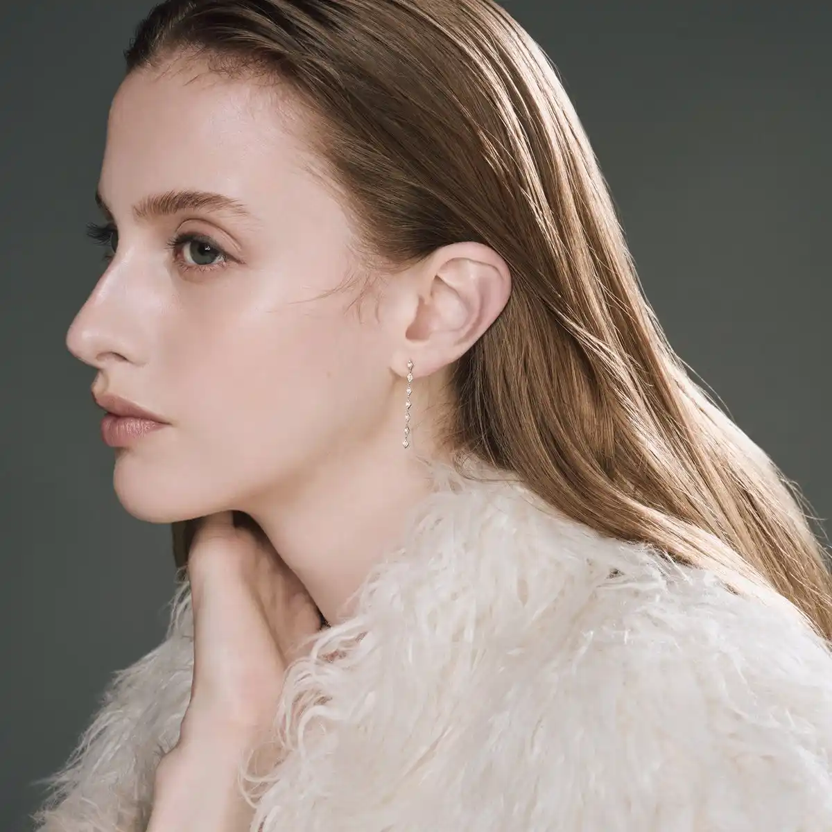 一つ一つにあしらわれたダイヤモンドが光を捉えてきらめき、動きに合わせてしなやかに揺れるシルエットが、スタイリングに華やかさをプラスします。 |