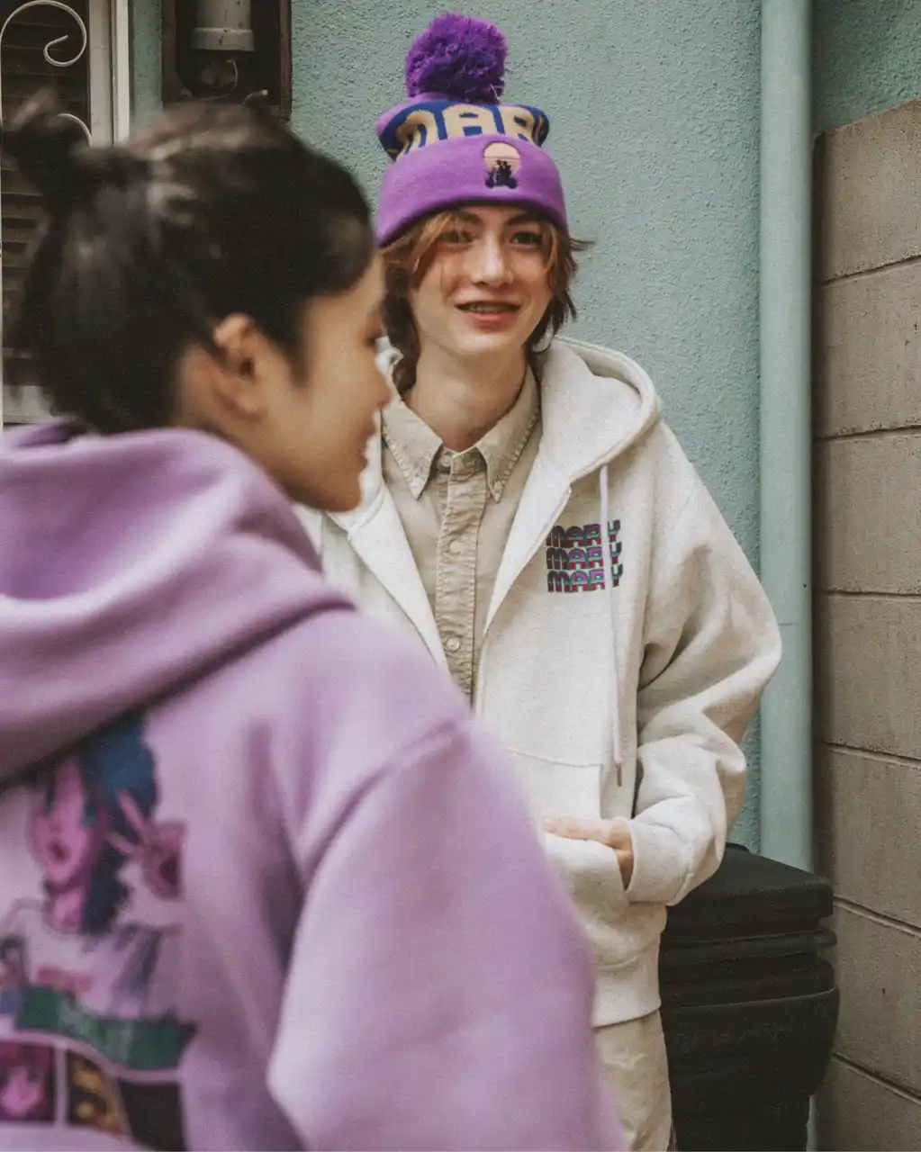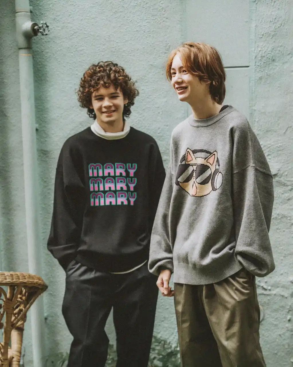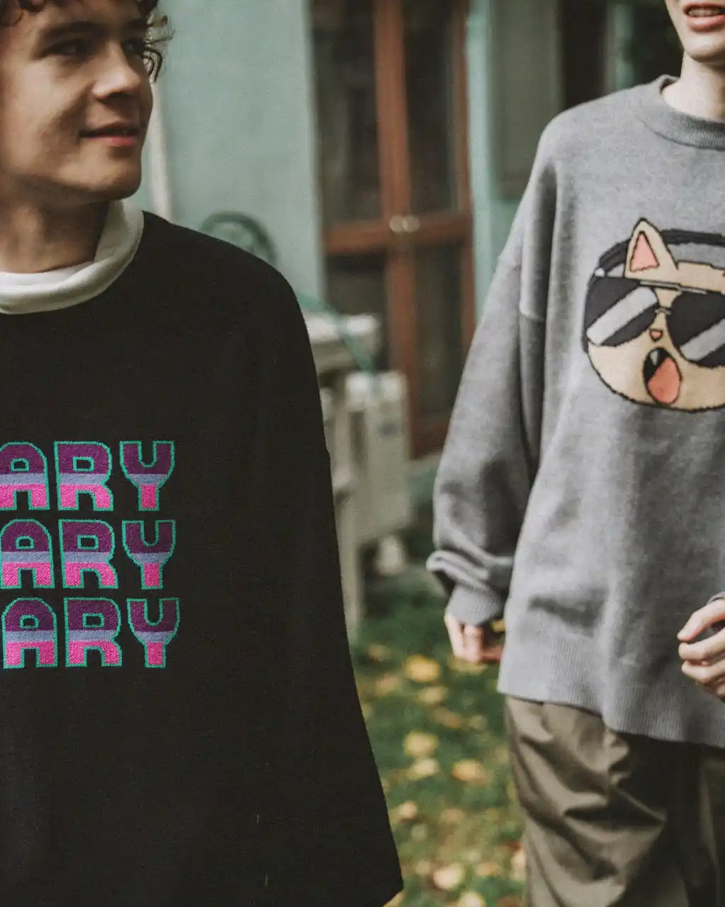 | 代名詞となる”エモい”イラストがプリントされたスウェットやニットなど、秋冬に活躍するウェアをはじめ、ニット帽やマフラーなどのアパレル小物を計6型展開する。 | ||||||||||||||