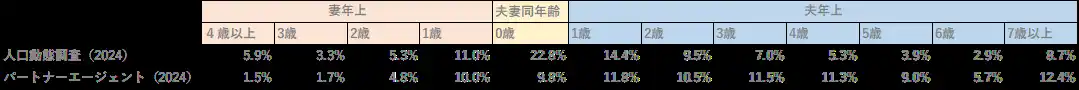 結婚相談所「パートナーエージェント」(運営会社:タメニー株式会社、代表取締役社長:佐藤茂、証券コード:東証グロース6181)は、成婚退会したお客様の年齢差について最新データを集計しましたので、以下のとおりお知らせします。