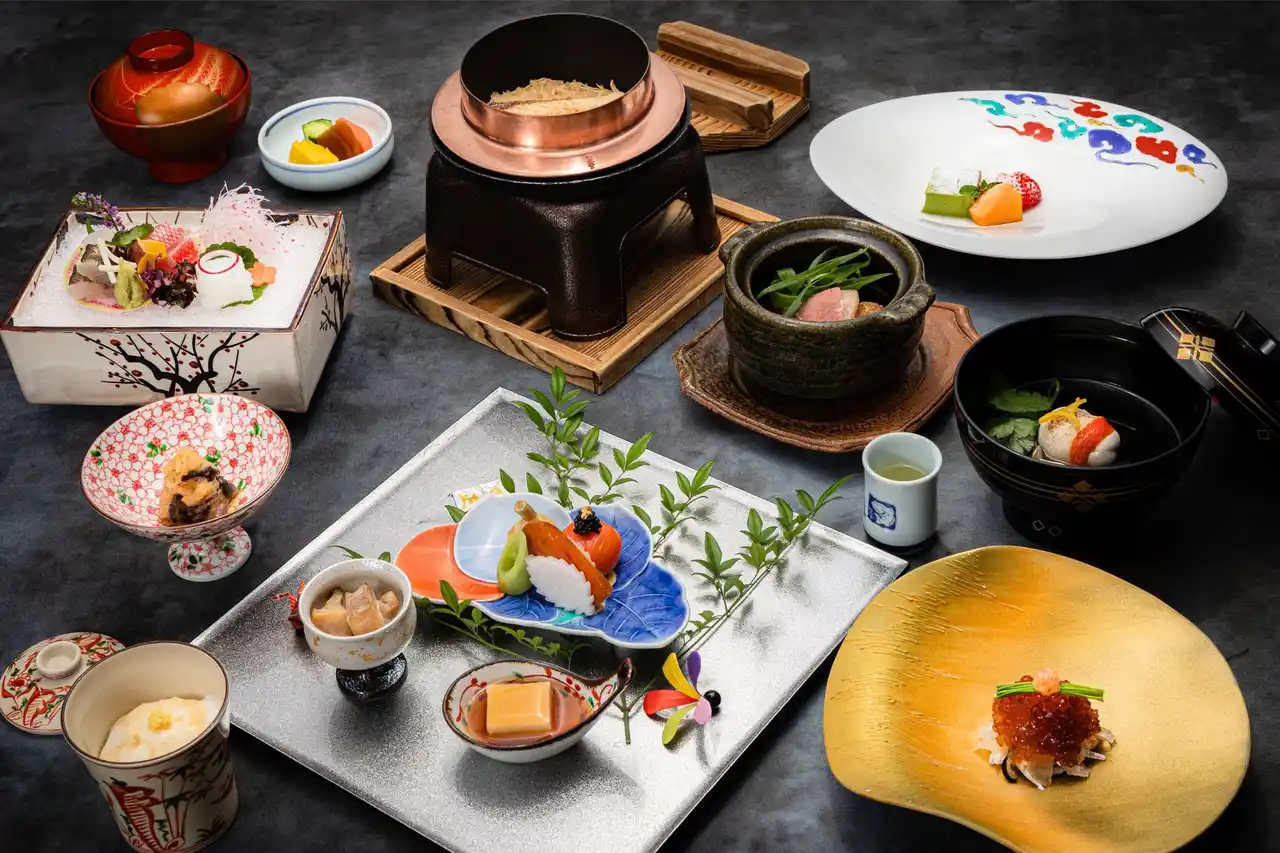 新春の和会席は、伊豆の豊かな自然と旬の恵みを凝縮した、彩り豊かで上品な祝膳です。伊勢海老や金目鯛、トラフグなどの高級食材を使い、目にも美しく、味わい深い一皿一皿が、年末年始にふさわしい贅沢なひとときを演出します。 |