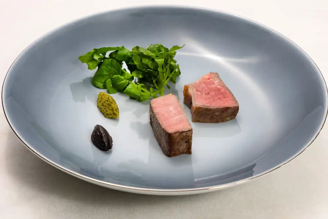 アミューズとして登場する「萬幻豚のリエット」「鮑と烏賊 カリフラワームースとキャビア」「赤座海老のフリット」は、それぞれ異なる食感と旨味が魅力の贅沢な3点セット。また、伊勢海老・鰻・雲丹と山芋のフランは、炭焼きの香りと滑らかなフランの融合を楽しめる一皿です。さらに、黒毛和牛と50日間熟成させた静岡県産牛の2つの味わいをご用意し、贅沢な肉の旨味を存分にお楽しみいただけます。 |