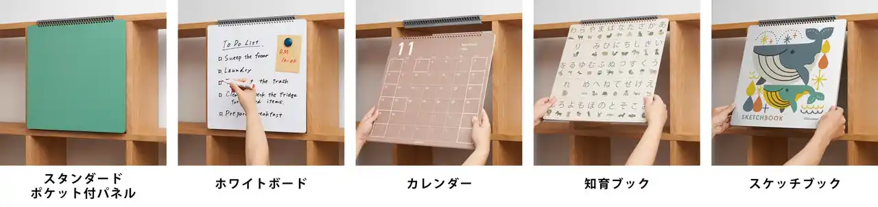 NORENTo冊子は、キッズルーム、ホームオフィス、リビングなど、様々なシーンで利用できる5種類の機能を持っています。 |