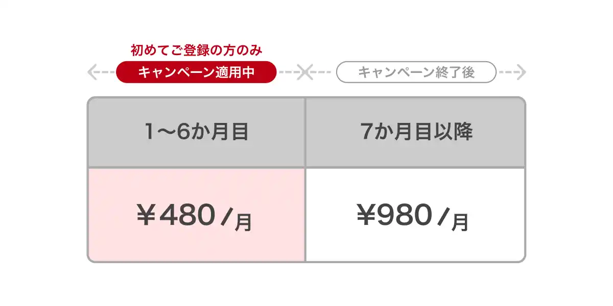 | ※本キャンペーンは、初めてご利用の方が対象の初月無料トライアルは適用されません。 | |||