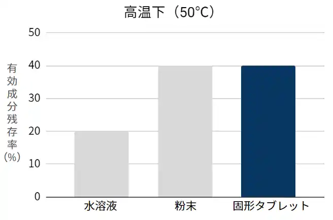 | 水溶液や粉末と比べた“有効成分の保持” | |||||||||