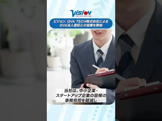 株式会社ビジョン(本社:東京都新宿区 代表取締役社長 COO:大田 健司 以下、当社)は、GVA TECH株式会社(本社:東京都渋谷区、代表取締役:山本 俊)による「GVA法人登記」との協業を開始し、当社のユーザーが同サービスを割引価格で利用できる環境を整備しました。 |