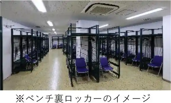 「カジュアルラン部門<2>」の参加前後に球場のベンチ裏にあるロッカールームを利用できるプランです。 |