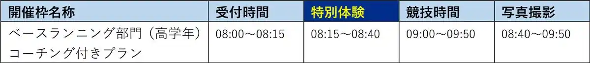 また、「ベースランニング部門」参加前にワンポイントレッスンが受けられる「コーチング付きプラン」や、「カジュアルラン部門」と合わせてプレミアムラウンジでのお食事が体験できる「球宴付きプラン」・球場ベンチ裏のロッカールームを更衣室として利用できる「ロッカー利用プラン」といった販売数限定の「特別体験付きプラン」も登場。 |