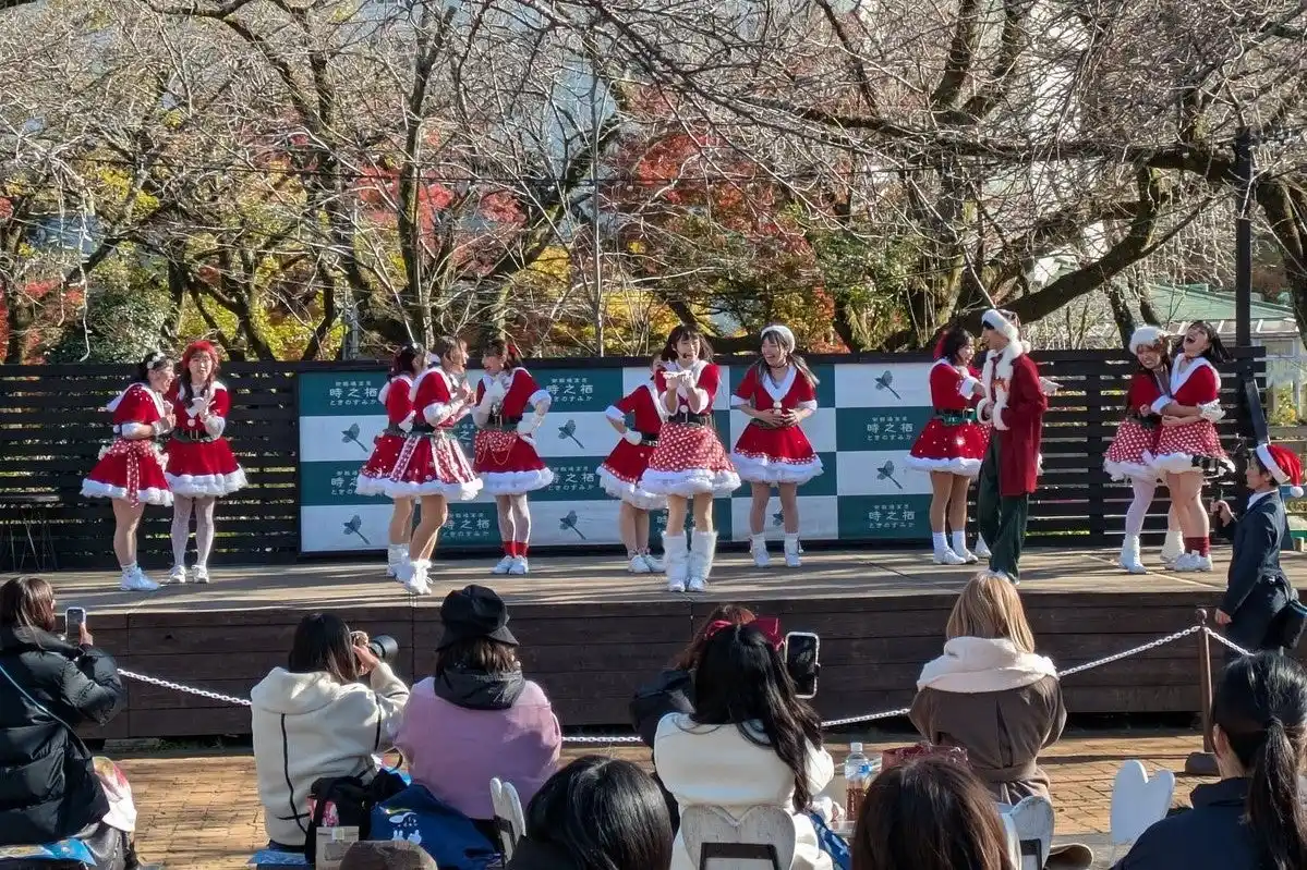 | 舞台は、時之栖園内の屋外ステージ「さくらSQUARE」。16:15~と18:00~の2回公演で、クリスマスをテーマにしたスペシャルダンスステージが繰り広げられます。キラキラと輝くイルミネーションの中で、笑顔あふれるダンサーたちが冬の夜を温かく彩ります。楽曲や振付、衣装はすべてクリスマス仕様。子どもから大人まで楽しめる構成で、ファミリーやカップルにもおすすめです。 | |||||||||||||||||||