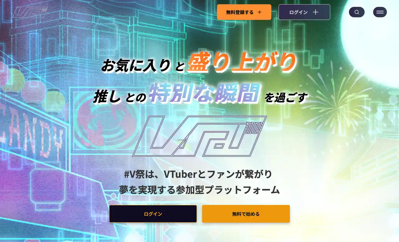 『V祭』は、VTuberの夢をファンとともに実現するクラウドファンディングプラットフォームとして2025年7月にサービスを開始。同時に、VTuberの活動を紹介する「VTuberデータベース」を先行公開しました。 |