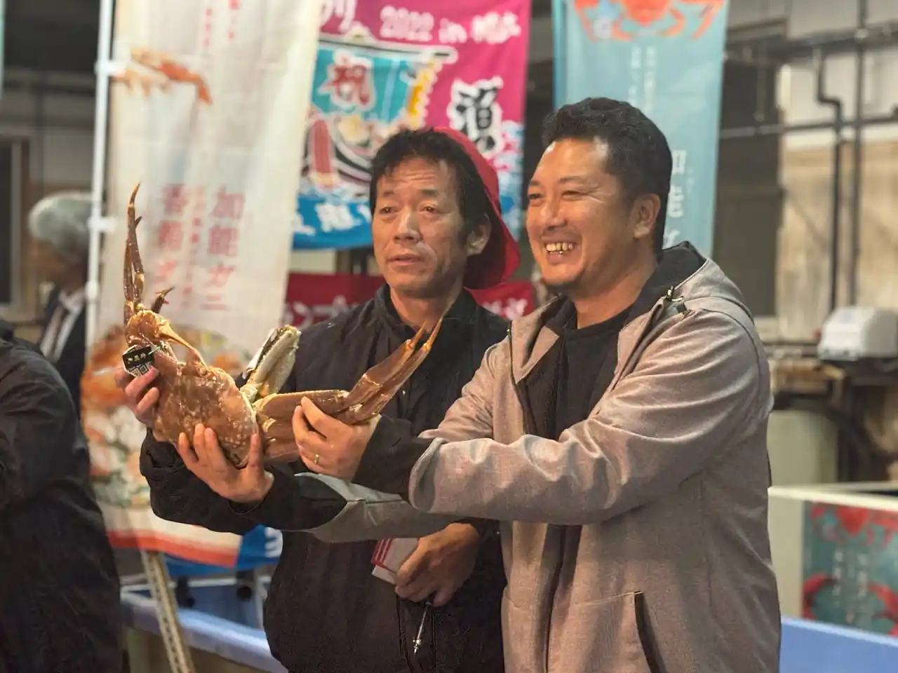 なんとしてでも落としたいという気持ちで臨みました。明日11月7日には新たな旅館『つる幸』がオープンします。鮮度もよく、滅多にないほど立派なカニなので、ぜひお刺身でお客様に楽しんでいただきたいと思っています。今回の初セリが少しでも明るい話題となり、被災された方々の希望や能登の復興につながればうれしいです。加能ガニを通して、全国の皆さんに石川県の魅力を知ってもらい、ぜひ訪れていただきたいと願っています。 |